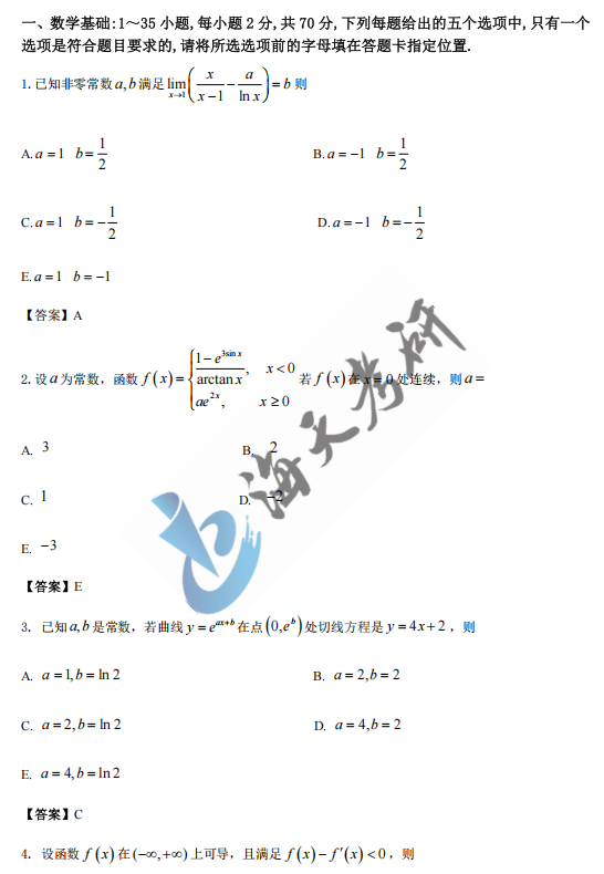 以上就是海天考研网为各位考生整理的2025经综396真题解析——数学基础,持续为考研学子更新考研政治、数学、英语、199考研真题及答案解析等,各位考生可以根据自身需要关注收藏,及时查看完整版2025考研真题及答案解析。